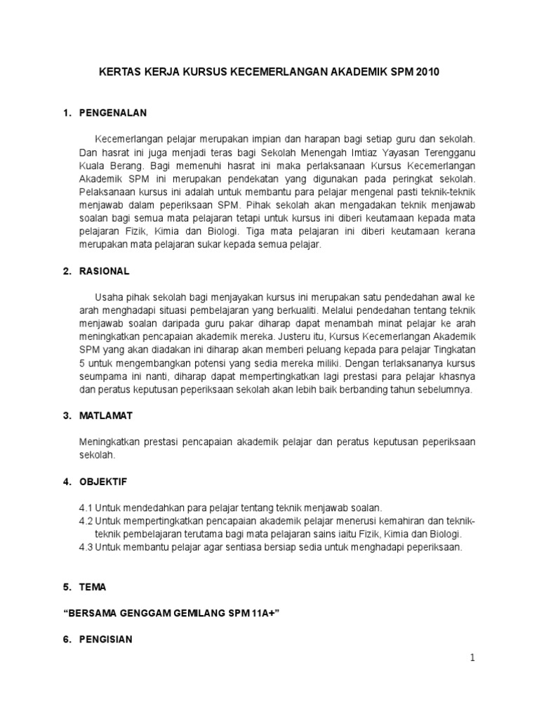 Kertas Kerja Program Peningkatan Akademik 2n Doc from reader021.docslide.net Kertas kerja projek pembangunan kemudahan sekolah. Kertas kerja program peningkatan akademik. Kertas kerja bulan sains dan matematik. 1.0 tujuan kertas kerja ini dikemukakan untuk mendapatkan pertimbangan dan sumbangan kewangan daripada pusat persediaan sains & teknologi dengan tujuan berikut: Objektif program di akhir program ini diharapkan : Sm imtiaz yt besut, terengganusekolah berprestasi tinggi. Kertas cadangan program kecemerlangan pmr dan spm. Contoh kertas kerja projek fotostat kelas pendidikan khas (1).