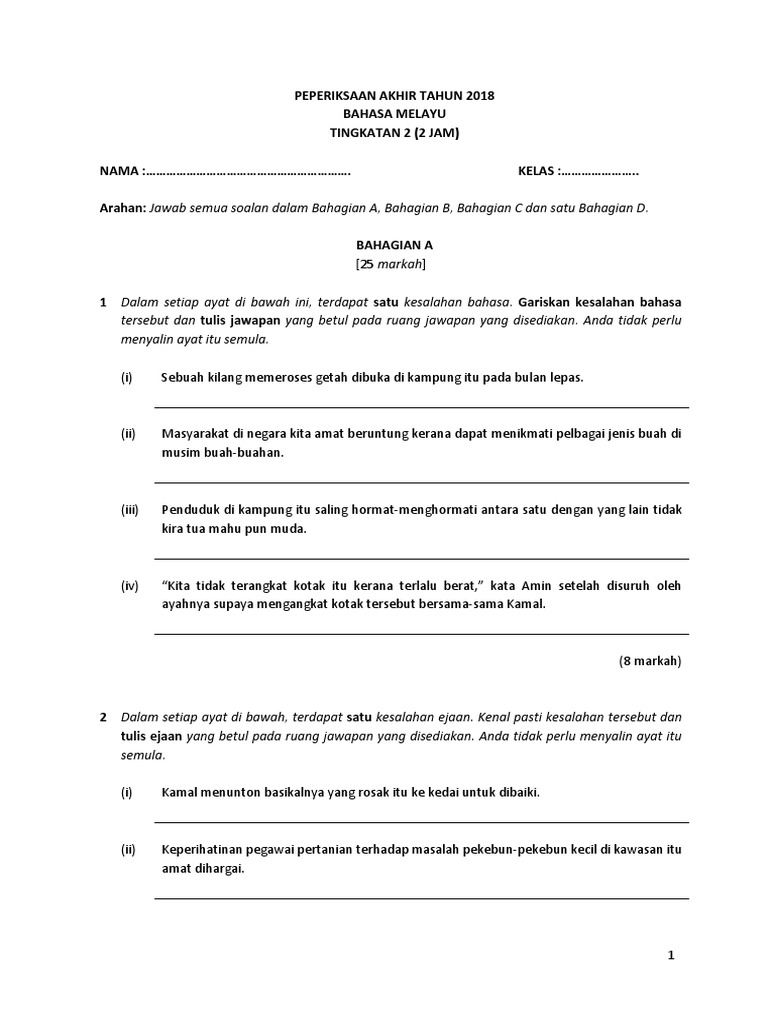 Soalan Peperiksaan Pertengahan Tahun 2018 Kssm Tingkatan 2 Bahasa Melayu from www.sistemguruonline.my We did not find results for: Maybe you would like to learn more about one of these? Check spelling or type a new query.